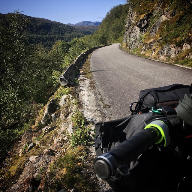 Dotarłem dziś do Måløy. Droga dziś bardzo mi się dłużyła, to grypa którą całkiem niechcący, zabrałem z pracy. Pogoda tak piękna że biłem jej brawo na każdym postoju, do puki nie wyszły te malutkie sprytne meszki, co kąsają bezlitośnie i dostają się prawie wszędzie. Teraz przed namiotem zapaliłem kadzidełko, meszki tego zapachu nie lubią, a ja mogę odpocząć 🌝 w pełni.